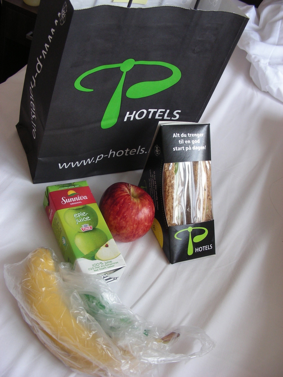 毎日同じメニュー(サンドウィッチ、林檎、ジュース)ですが、フィヨルド観光は早朝出発が多いので、良かったです。