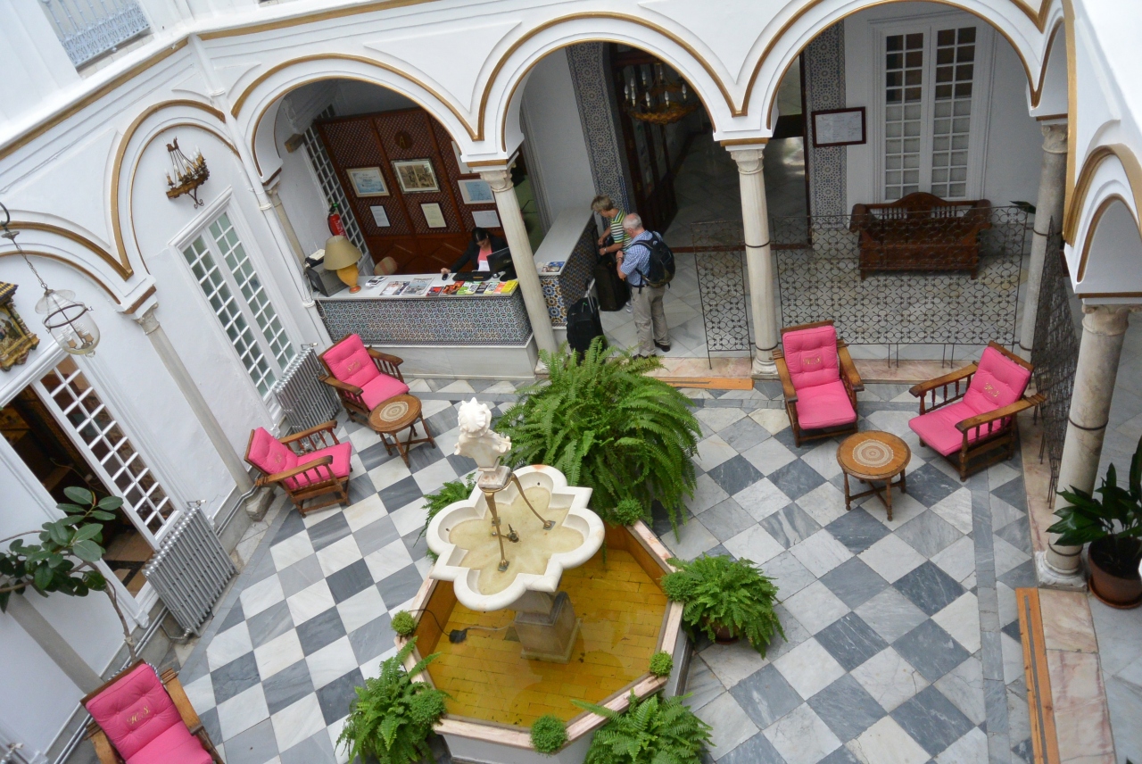 無愛想ながら「バスルーム付きの部屋もあるよ」とセールスを始めるオーナーや