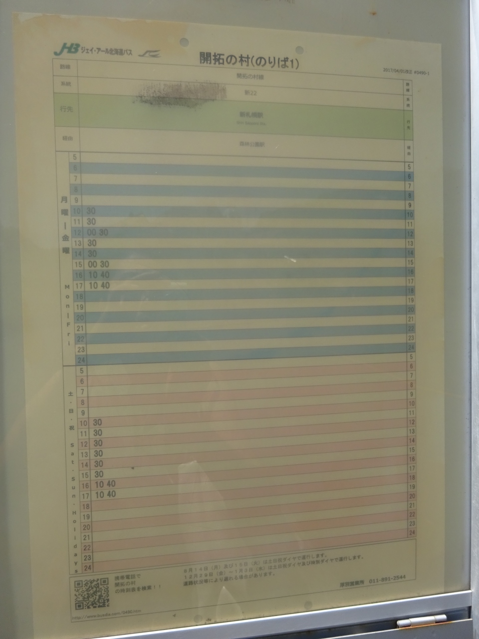 そして開拓の村にも大きいコインロッカーがありましたし、新札幌の駅にも(大きさは覚えていませんが)コインロッカーはありましたので、公共乗り物のみでプランニングする場合、ロッカーを利用して「道中に途中下車で出かける」という選択が可能であれば、その方が良いと思います。