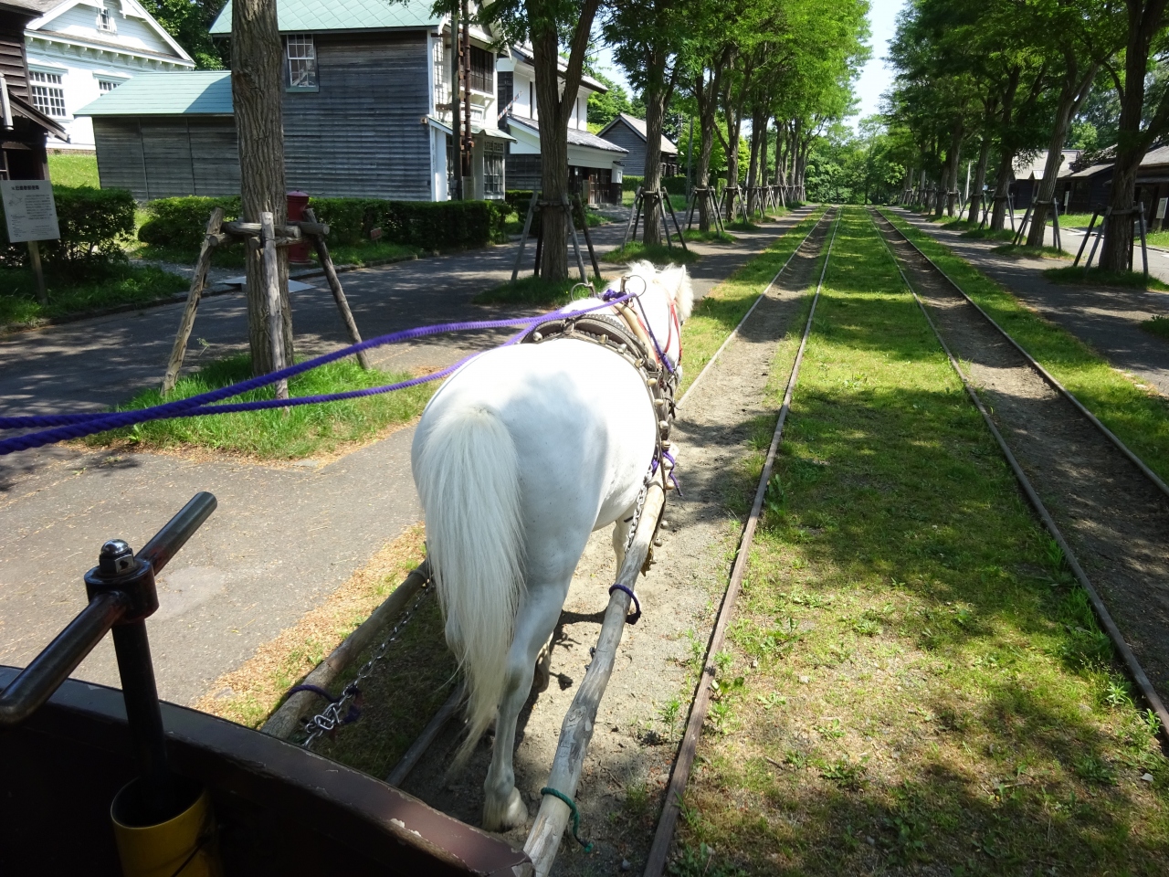 道産子が1頭で車両を引いてくれる馬車鉄道(別料金250円)も、車両を引く馬の後ろ姿が北海道開拓に力を尽くした人達と重なり、感動しちゃいました。
