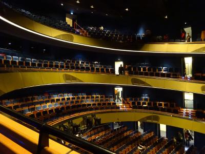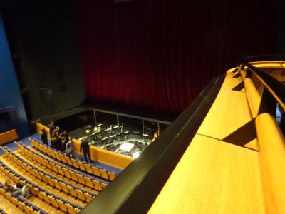 そして普通に座ると、舞台はまるっきり見えない。前の手すりが、座った状態だと胸の高さ位まで来るので。