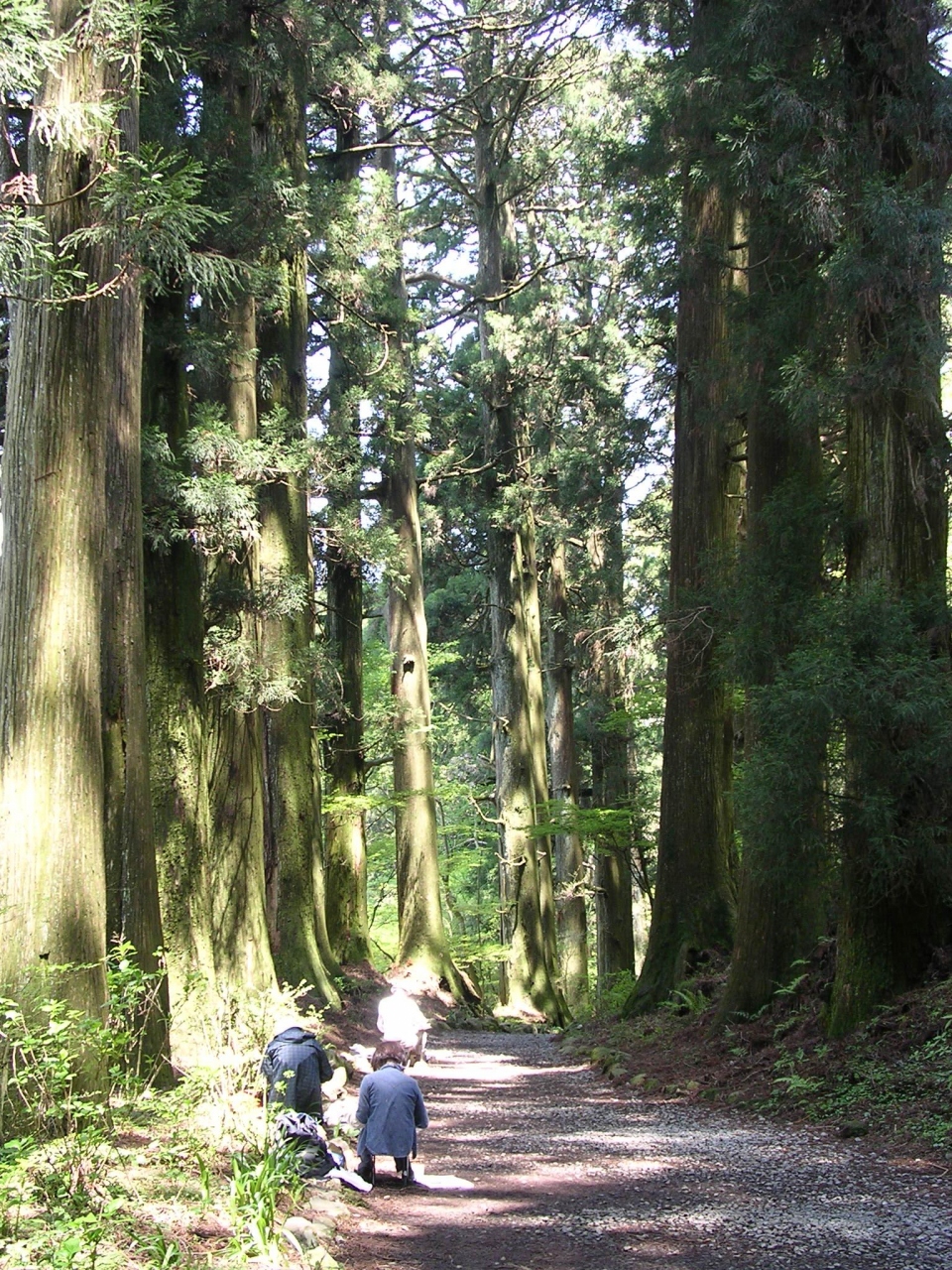 緑に囲まれた、朱塗りのお社が印象的な箱根神社で、階段を少し登って行きます。