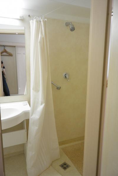 - ハンドヘルド、シャワーブースの敷居が低い、仕切がシャワーカーテン、なのがマイナス