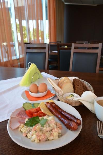 朝食メニューも豊富、ニュルンベルガーソーセージ!やお魚もあり(ある程度メニューの豊富さがご想像いただけるかと思い…)ました。