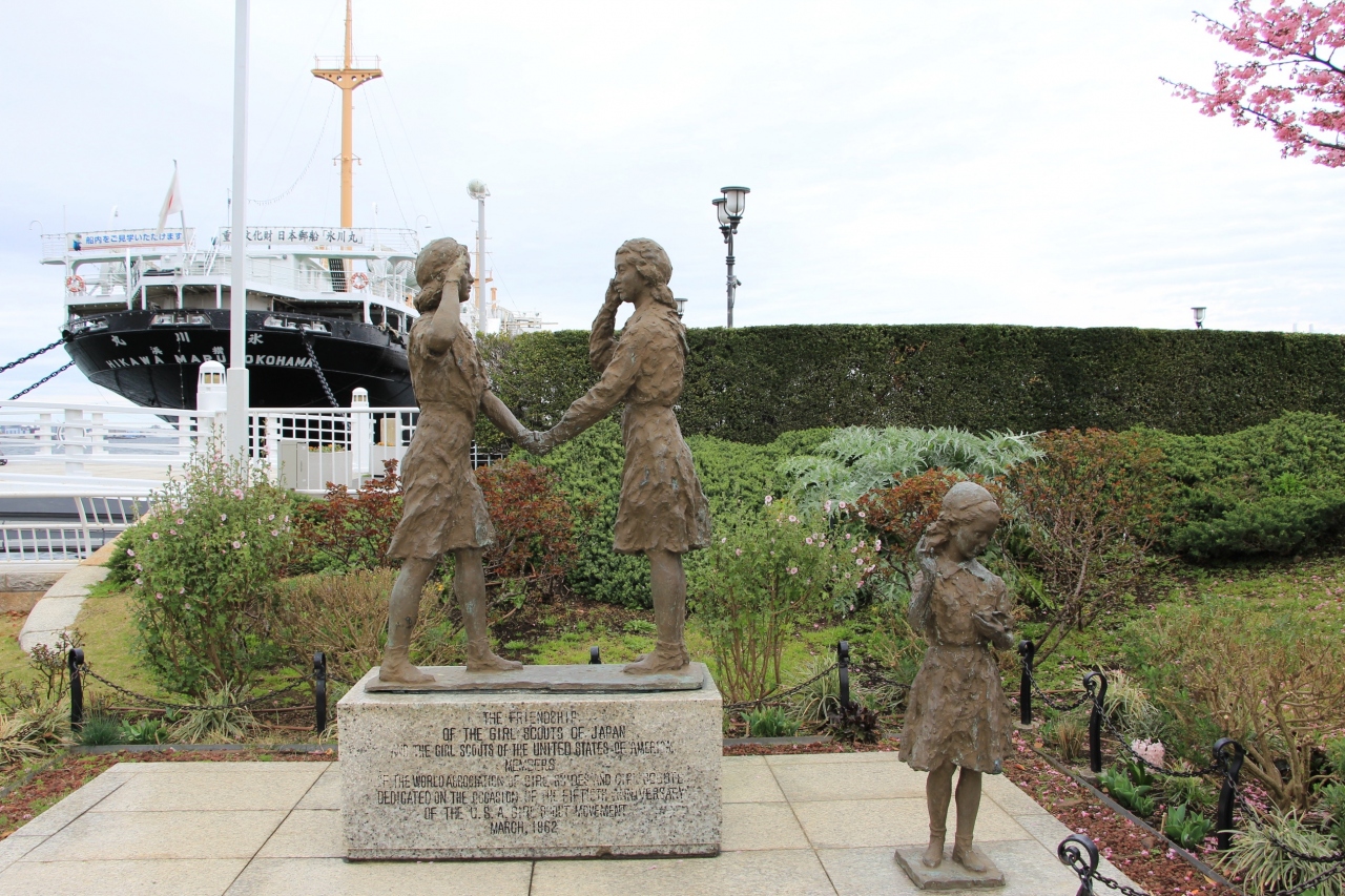 山下公園を散策した際、日米友好ガールスカウトの像を見つけました。ボーイスカウトはよく耳にしますが、ガールスカウトもあるのですね。