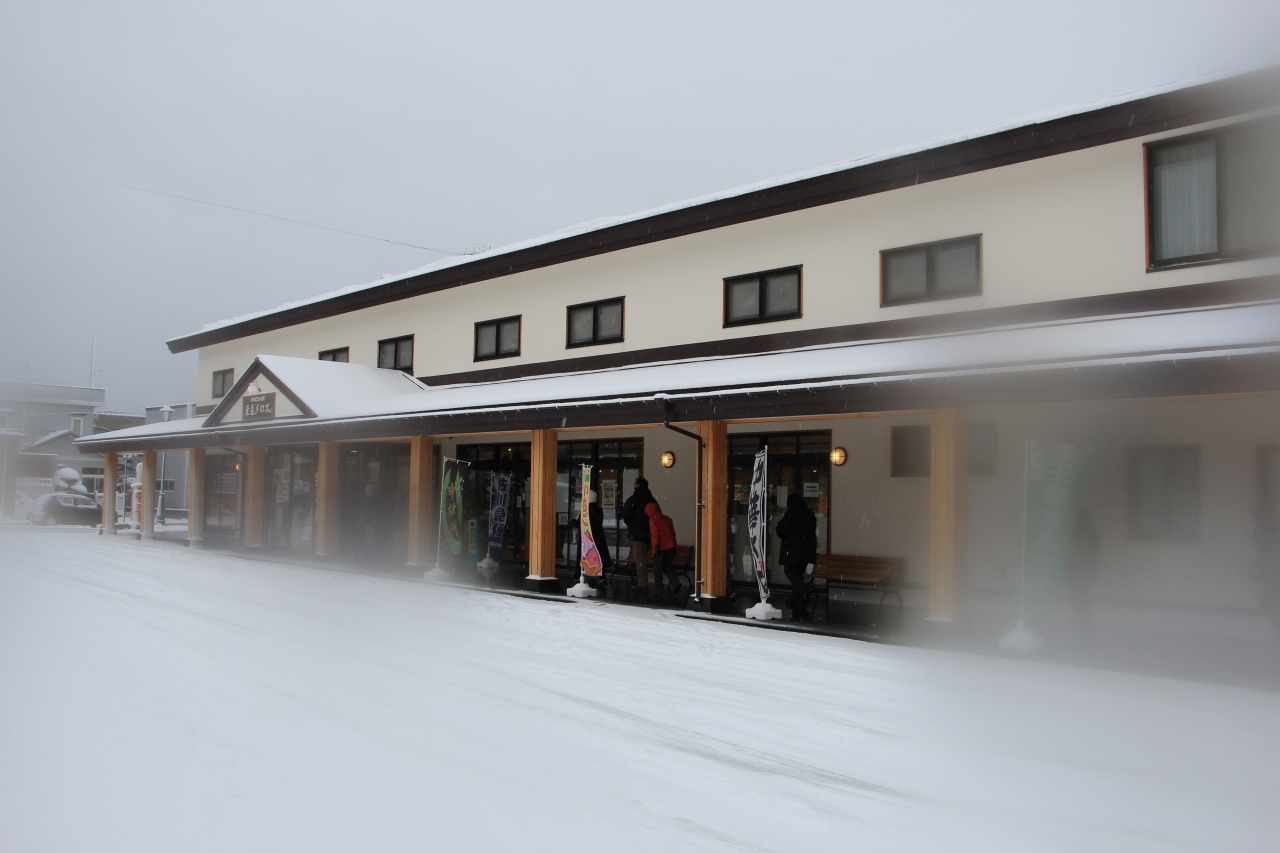 金木観光物産館「産直メロス」は、斜陽館のすぐ近くにあるお土産屋兼食事処です。津軽地方の特産品であるりんごなど生鮮食品も取り扱っていました。