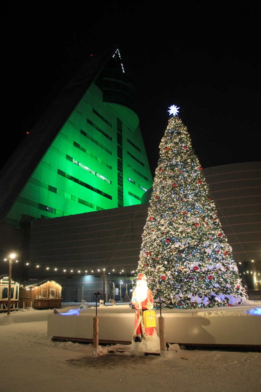 12月中旬に行きましたので、青森県観光物産館アスパムの屋外の広場ではCHRISTMAS MARKET in アスパムが開催されていました。大きな飾り付けられたクリスマスツリーが綺麗で良かったです。また、「クリスマス」にちなんだカラーで華やかにライトアップされたアスパムも綺麗で良かったです。