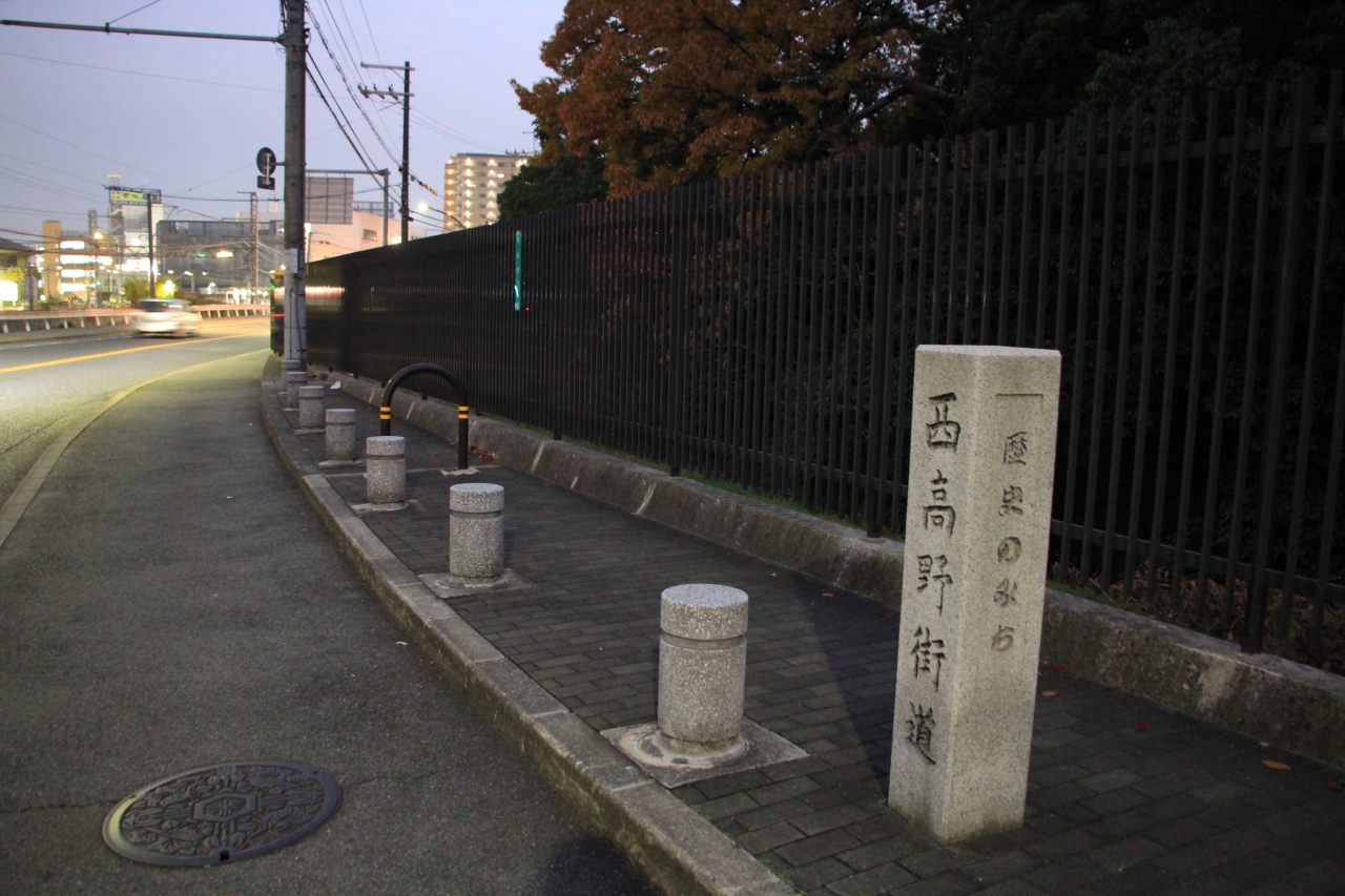 仁徳天皇陵古墳の北側の縁に沿って西高野街道は走っているので、古墳巡りをした際に歩きました。今でも幹線でとても交通量が多い道路でした。