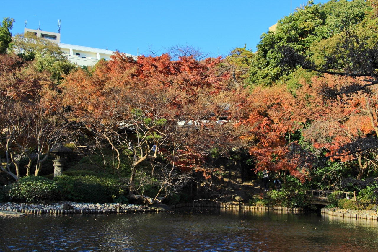 12月の中旬に八芳園に行きました。日本庭園の水亭のまわりのもみじはかなり落葉していましたが、高台などのもみじはまだまだ紅葉が綺麗で良かったです。