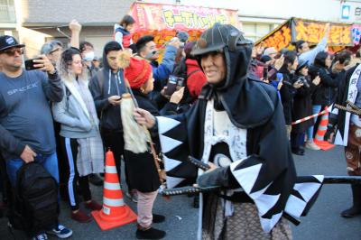義士祭りの赤穂浪士に扮した方々の行列だけ見学しました。外人さんも数名行列に加わっていて時代を感じました。