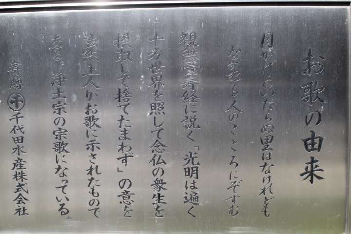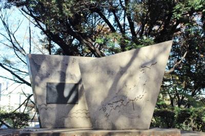 この記念碑は芝公園10号地(増上寺三解脱門の対面辺り)にあり、ぺルリ提督の像と向かい合う様に立っています。なぜ、芝公園にあるかはわかりません。この碑は日本の外交使節団が初めて太平洋を渡って以来100年になるのを記念して立てられたそうです。