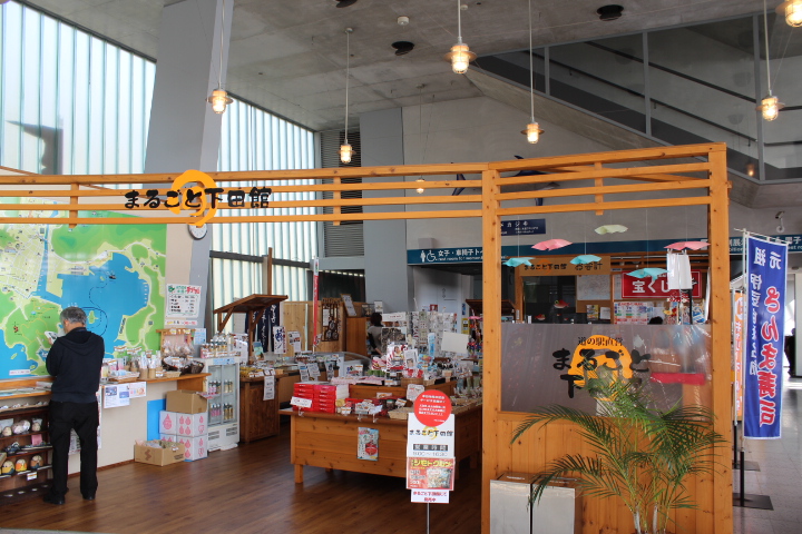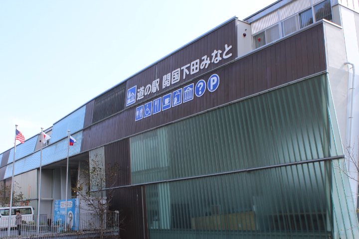 道の駅開国下田みなとは下田港に面し、遊覧船黒船サスケハナの乗船場の近くにあります。伊豆急下田駅からも徒歩15分程度です。下田市観光協会が併設されており、旅の情報を仕入れるのに便利です。またとても広い開放的なウッドデッキがあります。