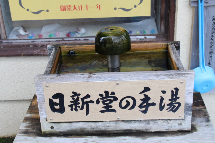 下田の町中には無料で利用できる足湯・手湯が沢山点在しています。有名なところは「ハリスの足湯」かな?ここは観光スポットペリーロードに近いので歩き疲れた立ち寄るといいと思います。一度に6人は座れます。また、すぐ近くに日新堂の手湯もありました。こちらはぬるめの湯でした。