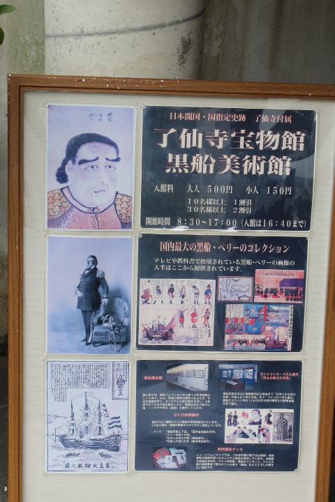 了仙寺宝物館は了仙寺境内に併設されています。宝物館には黒船・開国の史料が展示されています。国内最大の黒船・開国関連史料を誇っています。絵の史料が多いのが他の博物館と異なる点かな。また、先代住職が集めた秘仏コレクションもあります。