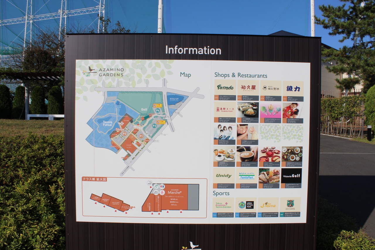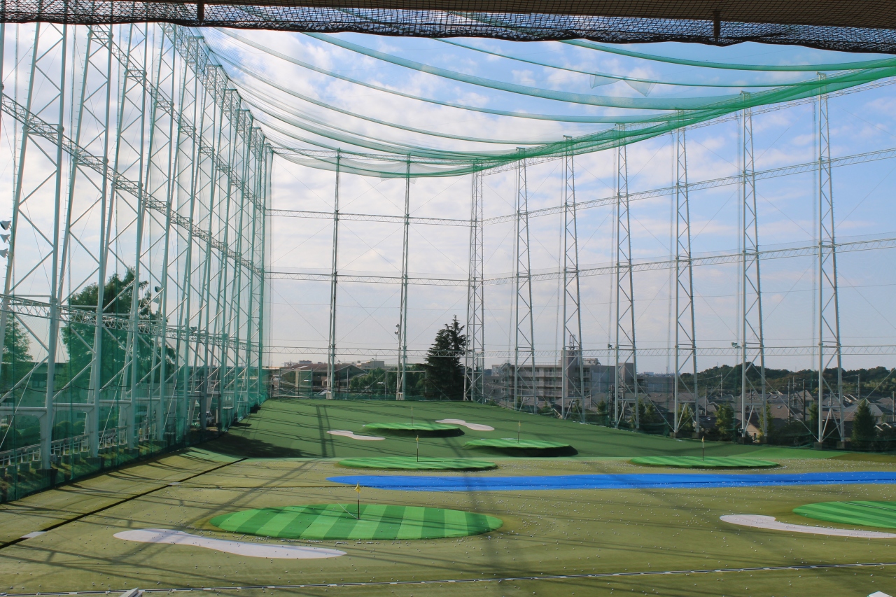 ゴルフ練習場、フットサルコート、テニスコート、商業施設等のある複合施設