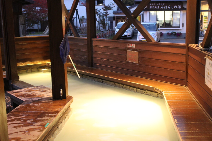 あんよの湯は、東武バス湯元温泉バス停の近くにあります。バスを待つ間に利用出来とっても便利です。屋根付きなので雨が降っても大丈夫です。白濁とした温泉は結構熱く、長時間浸かっていると体全体がポカポカしてきます。ハイキングの疲れを癒すにはもってこいです。しかも無料です。