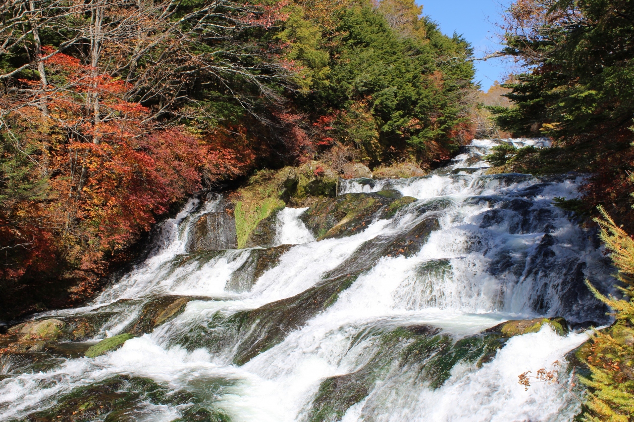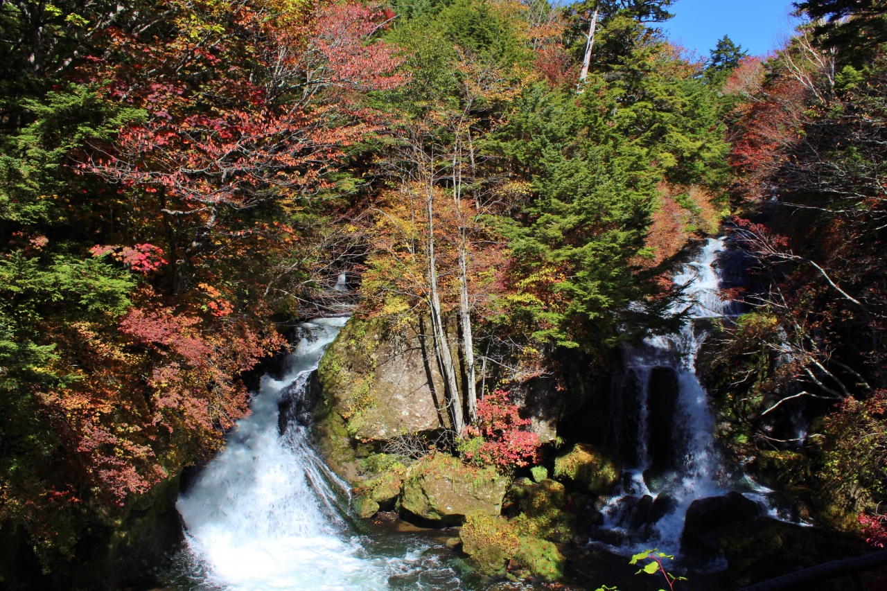 竜頭の滝は、日光駅から湯元温泉行きの路線バスで約1時間の竜頭の滝バス停から直ぐです。滝壺前の茶屋から、左岸の自然研究路から、滝の上の橋から滝を見ることが出来ます。竜頭の滝だけなら滝上のバス停で降りて左岸の自然研究路を下って茶屋まで歩く方が楽です。紅葉の名所でもあります。