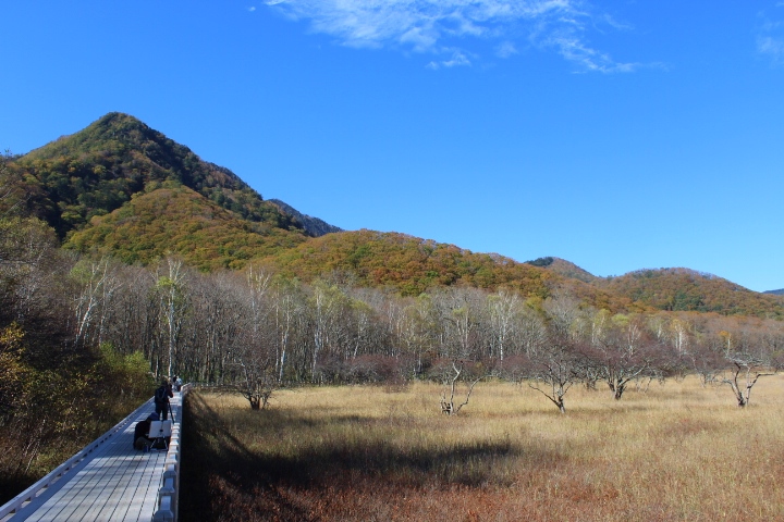 戦場ヶ原は、奥日光の三方を山に囲まれた湿原で、西端を湯川が流れています。湯川沿いに木道が整備されていて、アップダウンのない非常に歩きやすい遊歩道です。眺望の良いところは木道が広くなっておりベンチも設置されています。天気が良い日に山並み・湿原を見ながら食べる弁当は美味しく感じます。