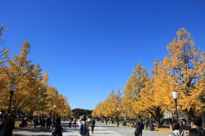 12/4に行きましたが、丁度銀杏並木の黄葉が綺麗で良かったです。銀杏並木の内側は幅員の広い歩行者専用の広場の様になっていて見学しやすくなっている点も良かったです。