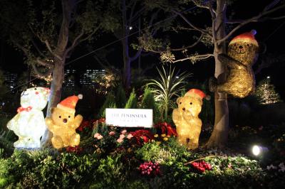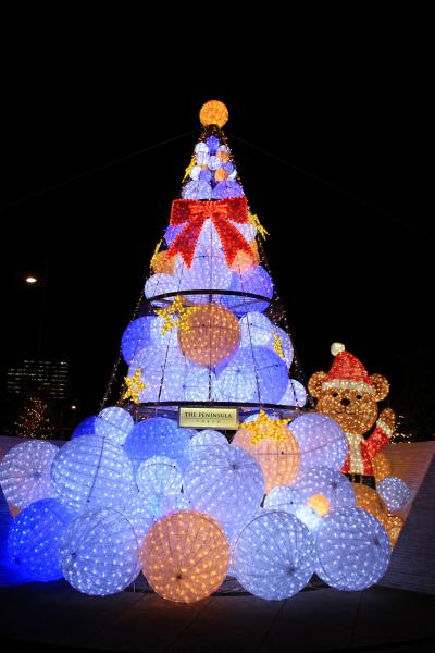 ザ・ペニンシュラ東京の前にクリスマスツリーの様にイルミネーションが飾られていて綺麗で良かったです。また、サンタクロースの赤い帽子を被った小熊のイルミネーションが愛らしくて良かったです。