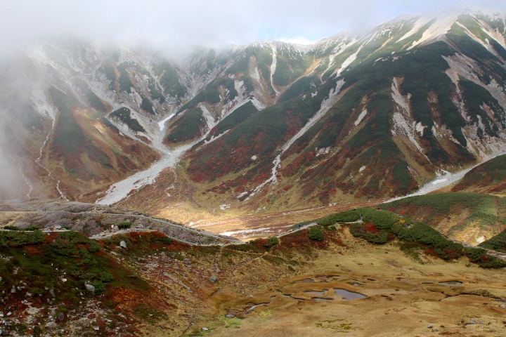 立山黒部アルペンルートのツアーに参加して黒部ダムにきましたが、添乗員さんがダム展望台には行ってくれるなとばかりに説明したのでダム展望台に行くことを自粛し、新展望広場に向かいました。そしたら、前日まで開催していた企画展示「黒部の物語」の撤去作業で新展望広場は立ち入り禁止となっていました。添乗員さんに騙された感じです。