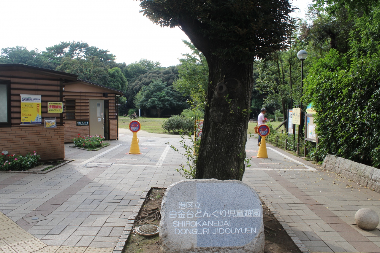 南北線白金台駅から徒歩3分ほどで目黒通りに面しています。西隣は自然教育園です。開放的な広場や築山があります。もと国有地の名残でどんぐりの出来る樹木が多いことから白金どんぐり児童遊園という名称になったようです。