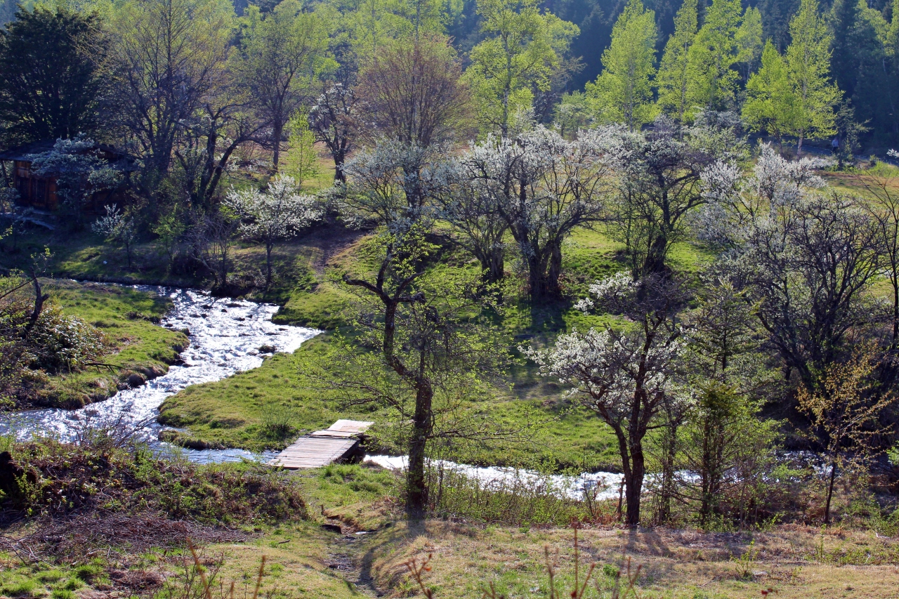 湿原の外部から湿原を貫通して流れる川の両側に自然堤防が出来、その上に樹木が成長して林となっています。この拠水林と呼ばれる林によって尾瀬ケ原の湿原は、上田代、中田代、下田代、ヨシッ堀田代などに分割されています。