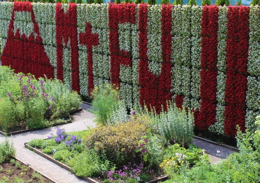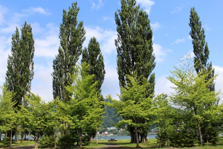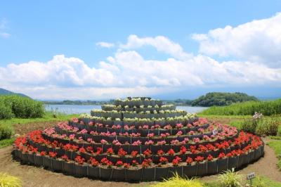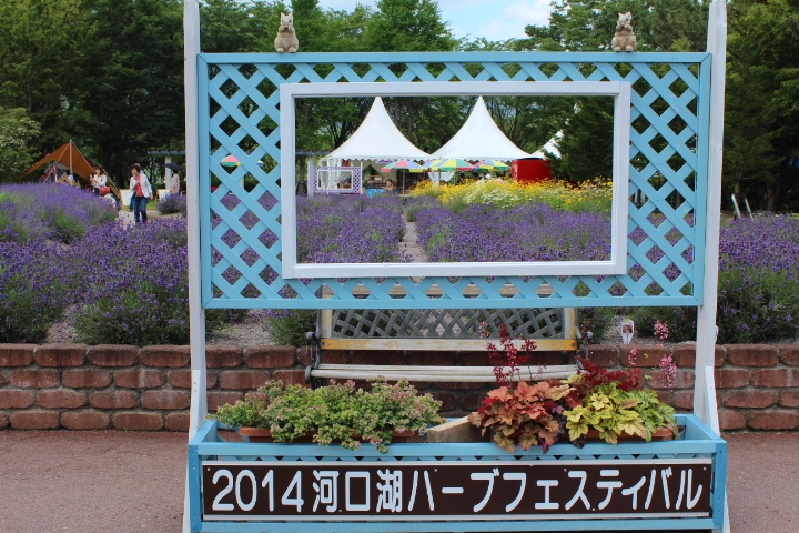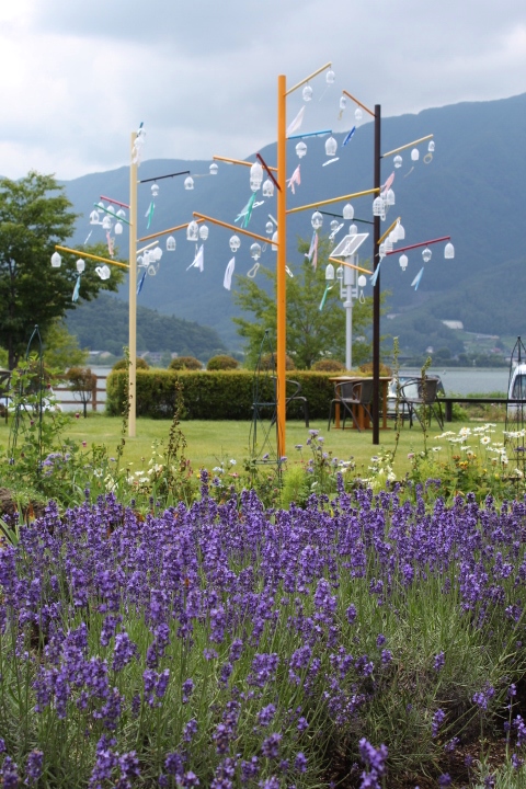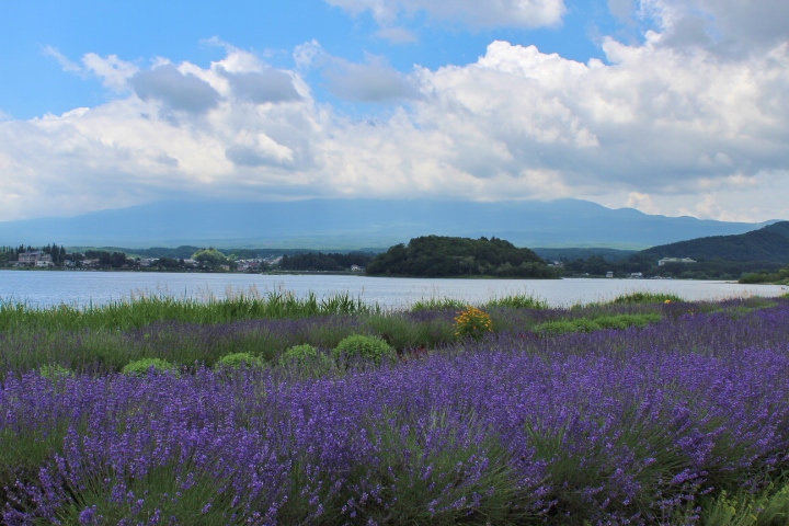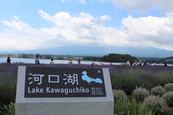 世界遺産富士山の構成資産である湖。湖畔にハーブフェスティバル会場。
