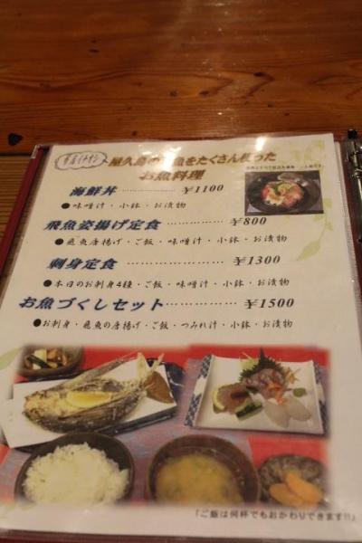 宮之浦港に近く店の前には「なごりの松原」、斜向かいには「屋久島環境文化センター」があります。お土産店に併設されたレストランといった感じです。飛魚姿揚げ定食を頂きました。頭から尾びれまで骨まで食べられるとのことでしたが、背骨は固く食べることは出来ませんでした。