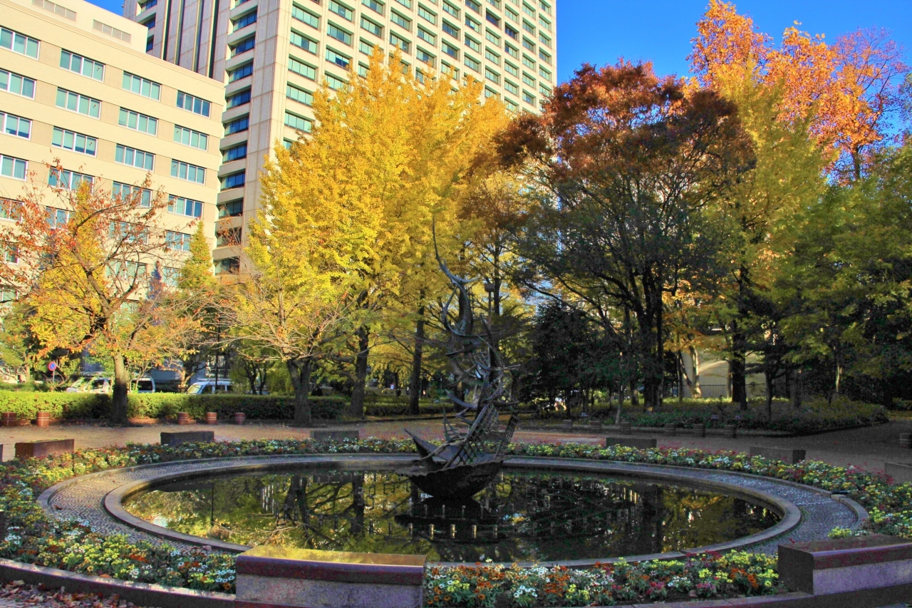 12月4日に日比谷公園に行った際、雲形池の真ん中に設置されている鶴の噴水を見てきました。丁度周辺のイチョウやもみじが綺麗に黄葉・紅葉していたので、鶴の噴水のバックに紅葉・黄葉が見られて良い景観となっていました。また、雲形池のアクセントにもなっていて良かったです。