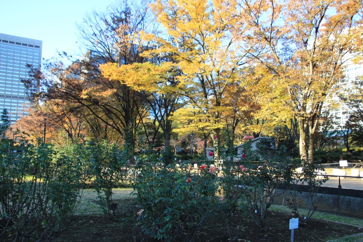 12月4日に日比谷公園の紅葉・黄葉を見に行きましたが、第二花壇にはまだ秋バラが咲いていてちょっと得した感じでした。秋バラは流石にピークを過ぎて花数は少なかったですが、紅葉・黄葉をバックに綺麗に見られて良かったです。