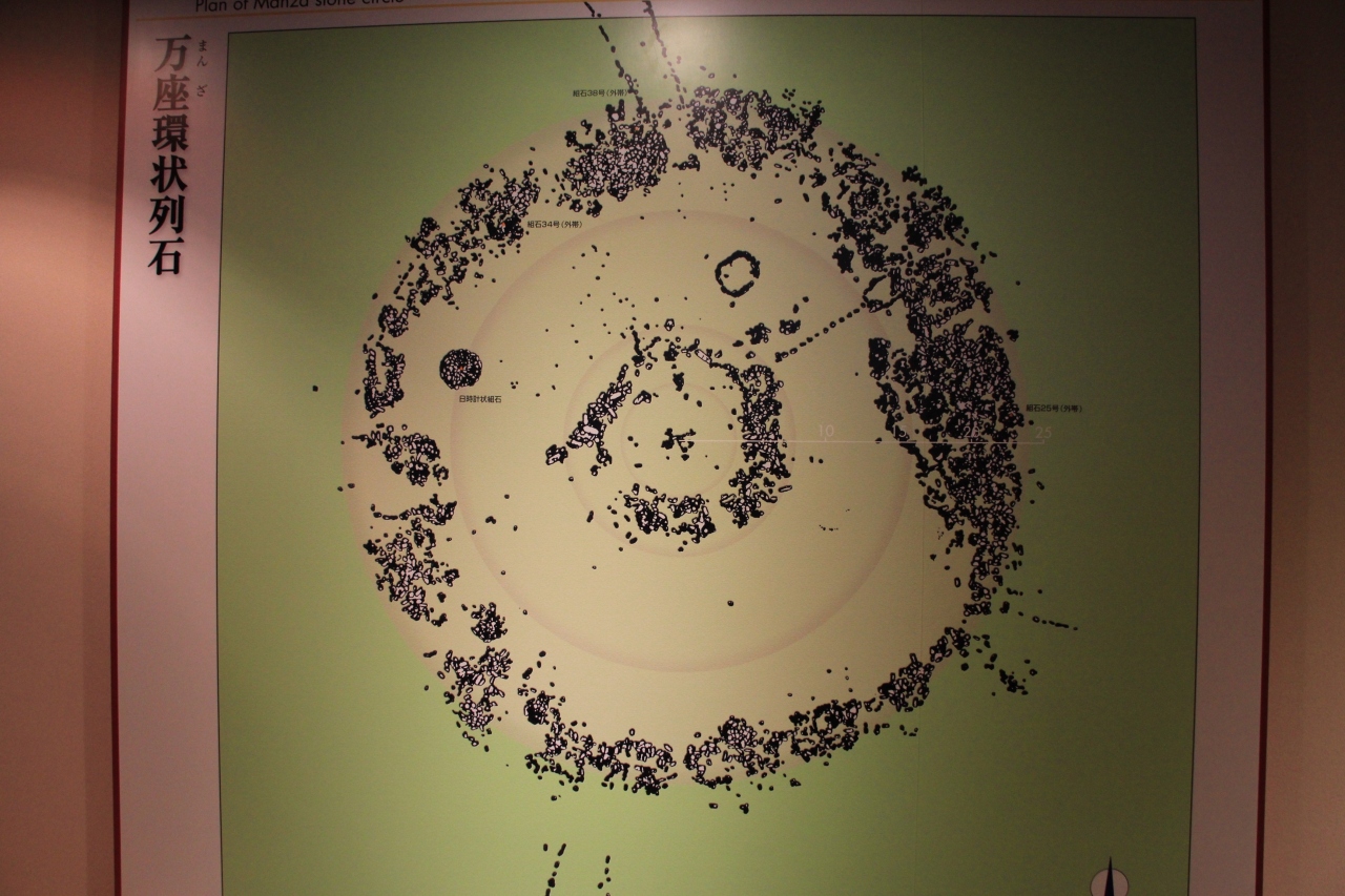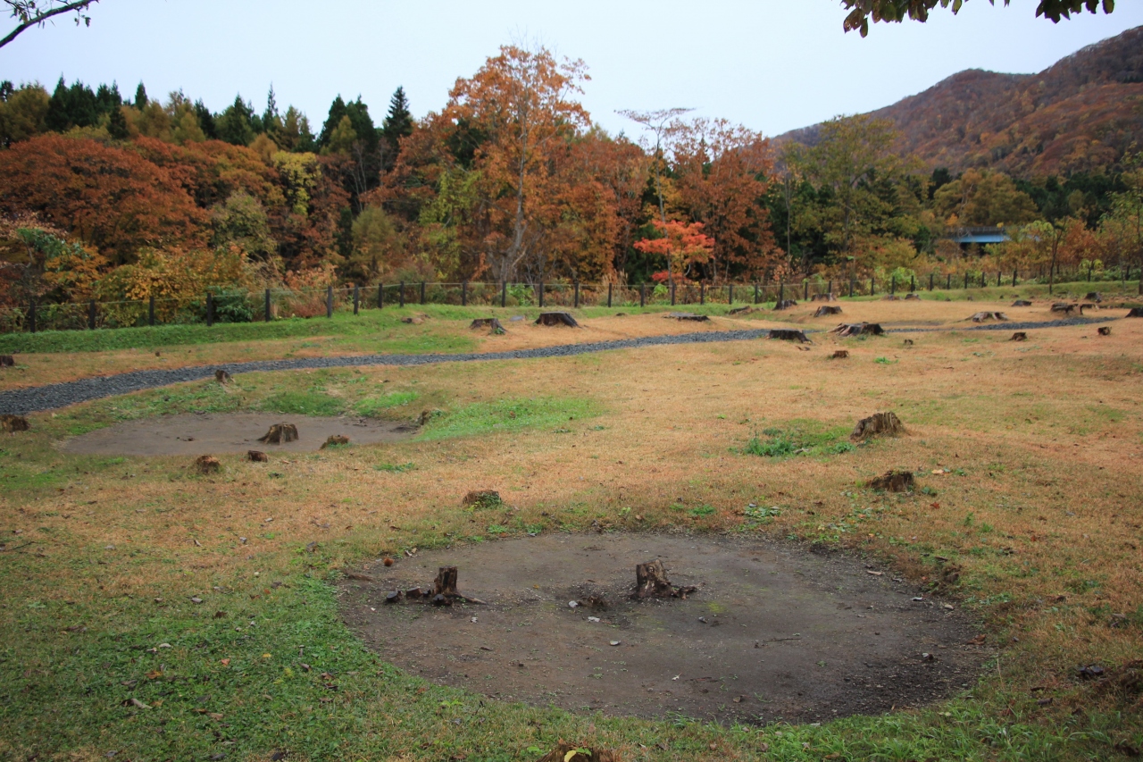 万座環状列石(最大径52メートル)と野中堂環状列石(最大径44メートル)の二つの環状列石があり