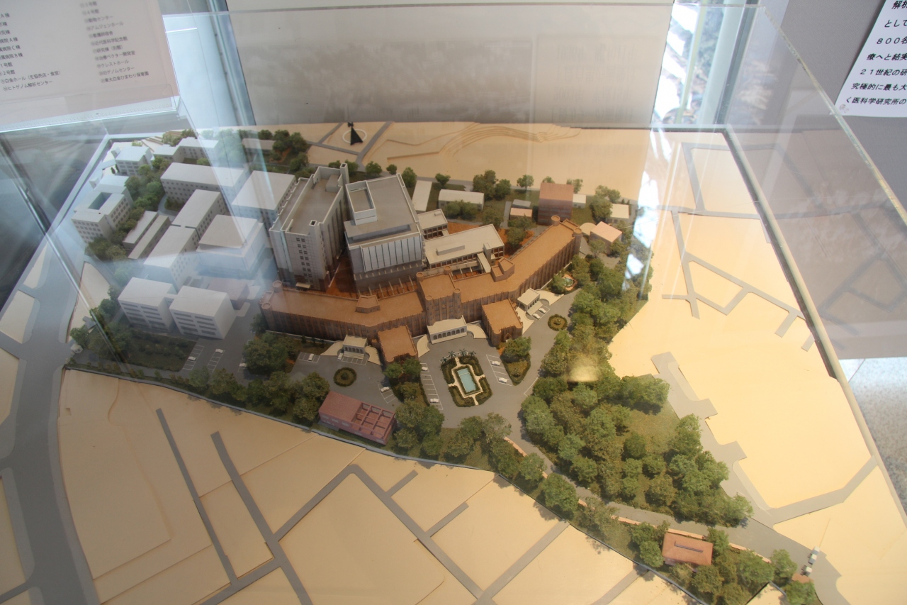 東京大学医科学研究所の表門から入ってすぐ左手にレンガ風の建物があります。そこが記念館です。入場無料です。収蔵物展示スペースのテラス側に休憩スペースがあります。歩き疲れたら、ここで一休みしています。静かで落ち着けます。