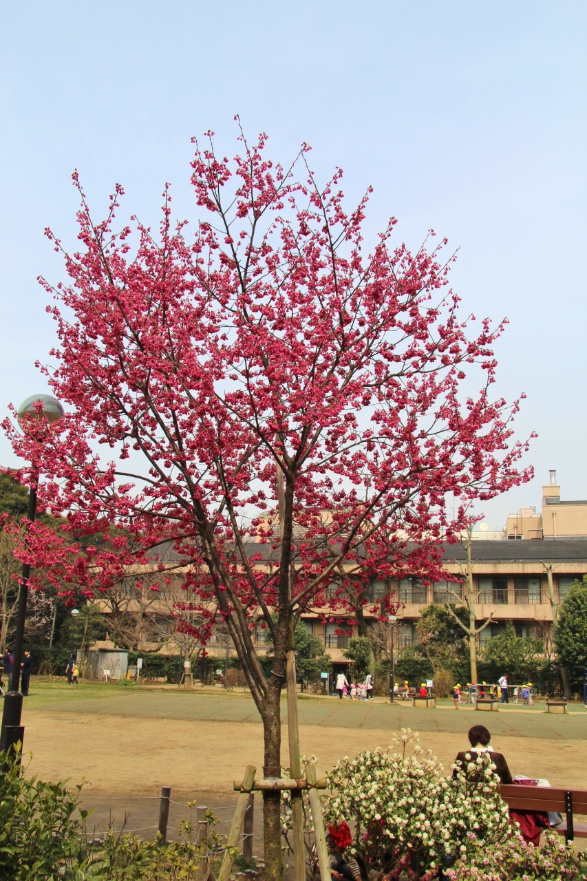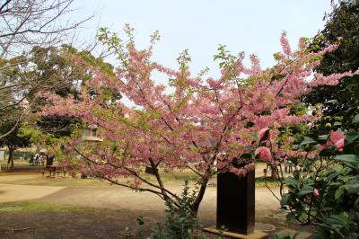 目黒駅から八芳園に歩いていると公園内の桜が目に入ったので立ち寄りました。この公園には、寒緋桜と河津桜が植えられていて両方とも見頃でした。また、沈丁花も植えられていて良い香りがしていました。尚ここは、目黒自然教育園同様、高松藩松平家下屋敷があったところです。