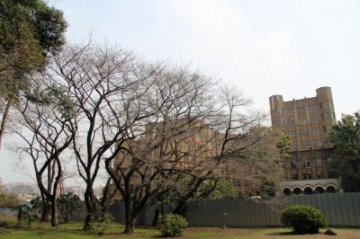 目黒駅から八芳園に向かう途中に立ち寄りました。この研究所は大村藩大村家下屋敷跡に建てられたそうです。目黒通り沿いの表門から入って右手に窪地がありますが、もしかしたら庭園の池だったかもしれません。窪地の先には桜の大木が植えられています。まだ開花していませんでしたが、咲いたら綺麗だと思われます。