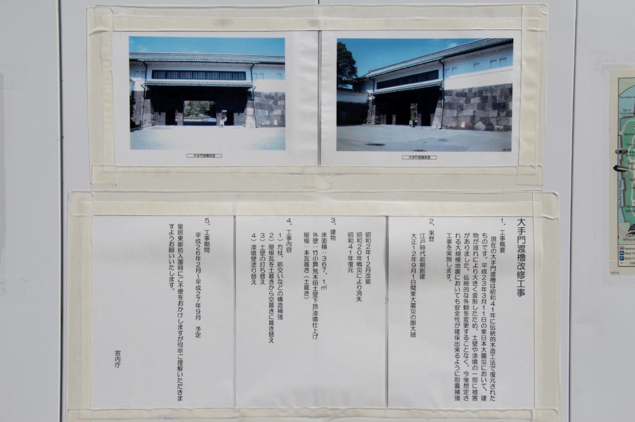 皇居外苑から皇居東御苑に通じる門ですが一般は通行できません。許可を得た業務用と思われる車両が通行しています。厳重に警備されていました。こちらも高麗門と渡櫓門から構成されていますが、残念ながら渡櫓門を見ることは出来ません。
