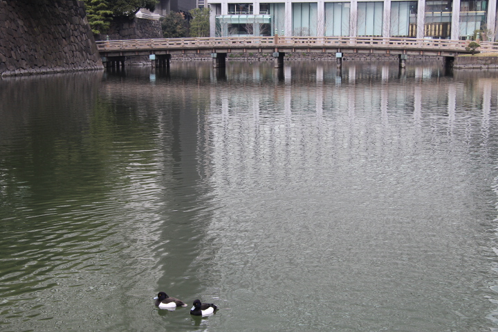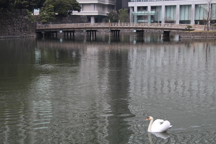 和田倉橋は日比谷通りから和田倉噴水公園に通じる橋です。欄干は木製ですが、橋そのものは鉄筋コンクリートで再建されています。江戸時代にはこの橋の先に和田倉門があったようです。今は枡形の石垣のみが残っています。