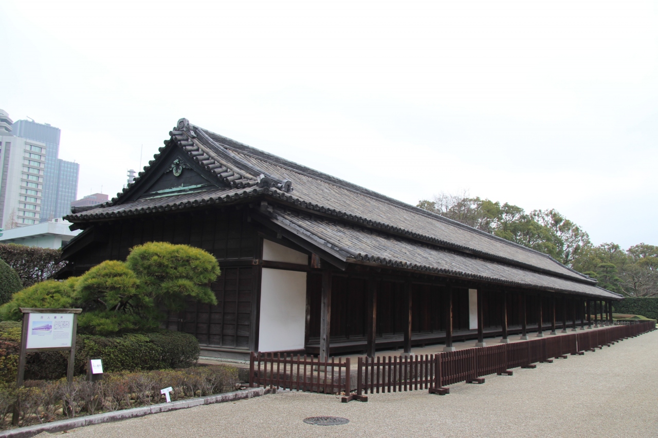 百人番所は皇居東御苑の大手門口から入って同人番所の先にあります。大手三の門を守衛するために常時百人の同心が詰めていたことからこのように名付けられたそうです。百人もの同心が詰めるだけあって横幅の広い建物です。