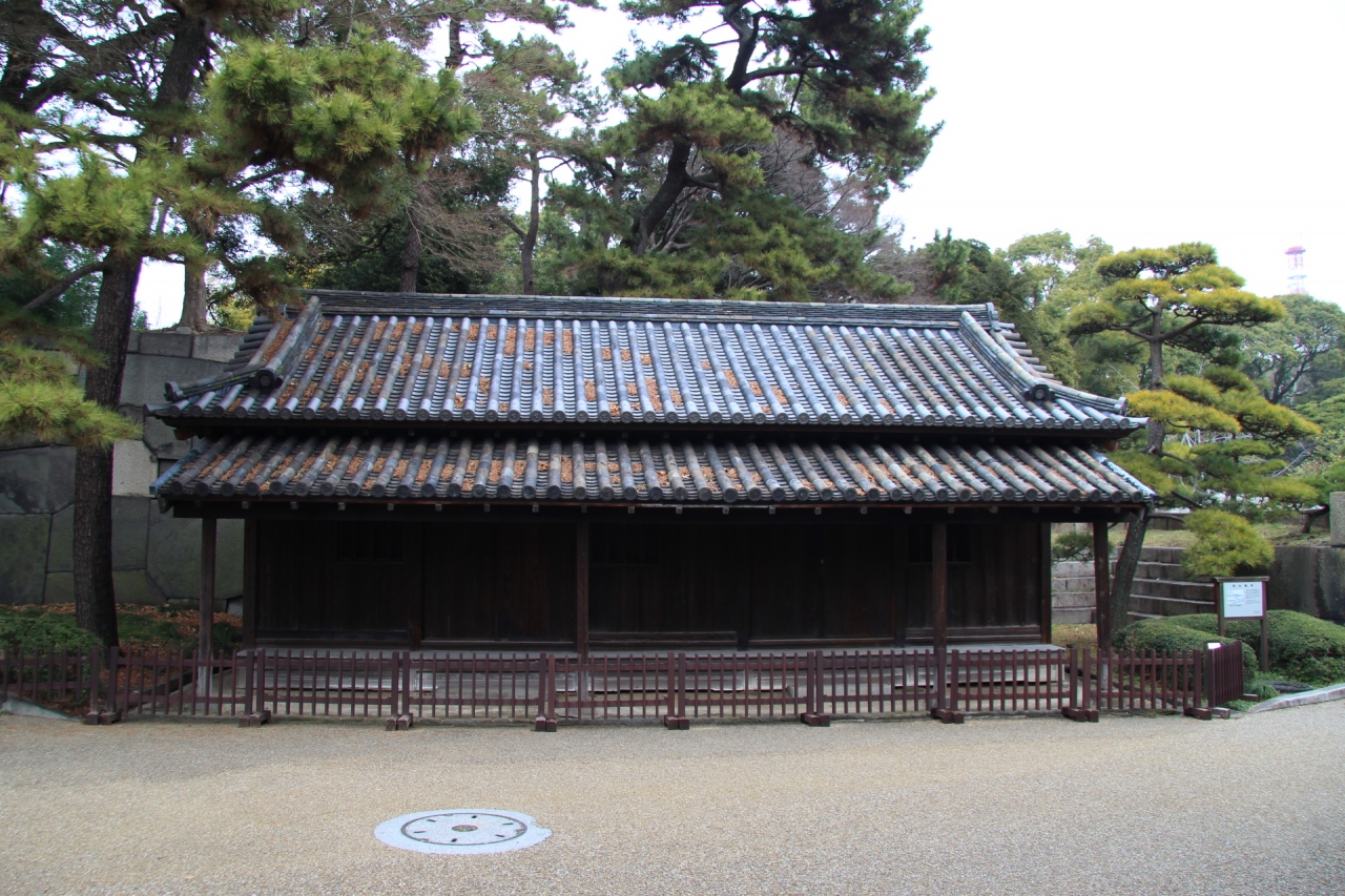 同心番所は旧江戸城の大手三の門を警護する与力・同心が詰めていた建物です。皇居東御苑の大手門口から入り休憩所の前を過ぎた正面にあります。旧江戸城に残る3つの番所の中で一番小さな建物です。徳川御三家以外の大名はここで駕籠を降ろされ検問を受けたそうです。