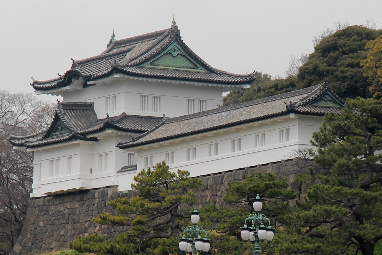 旧江戸城の櫓はほとんど焼失してしまいましたが、巽櫓を含めて3つ残っています。そのうち一番見やすいところにあるのが巽櫓です。内堀通りからも見ることが出来るので海外からの観光客はほとんど巽櫓の前で記念写真を撮っていました。