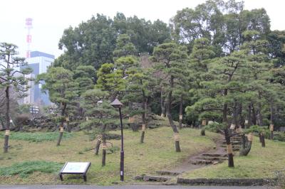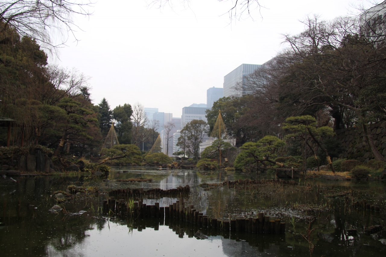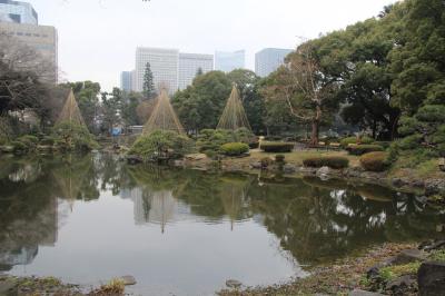 日比谷公園には二つの池がありますが、北東の角にあるのが心字池です。「心」の形と言われていますが、その様に見えないで見える感じです。何本かの松には雪吊が施されていました。ただ紅葉の頃に比べると物寂しい感じがします。