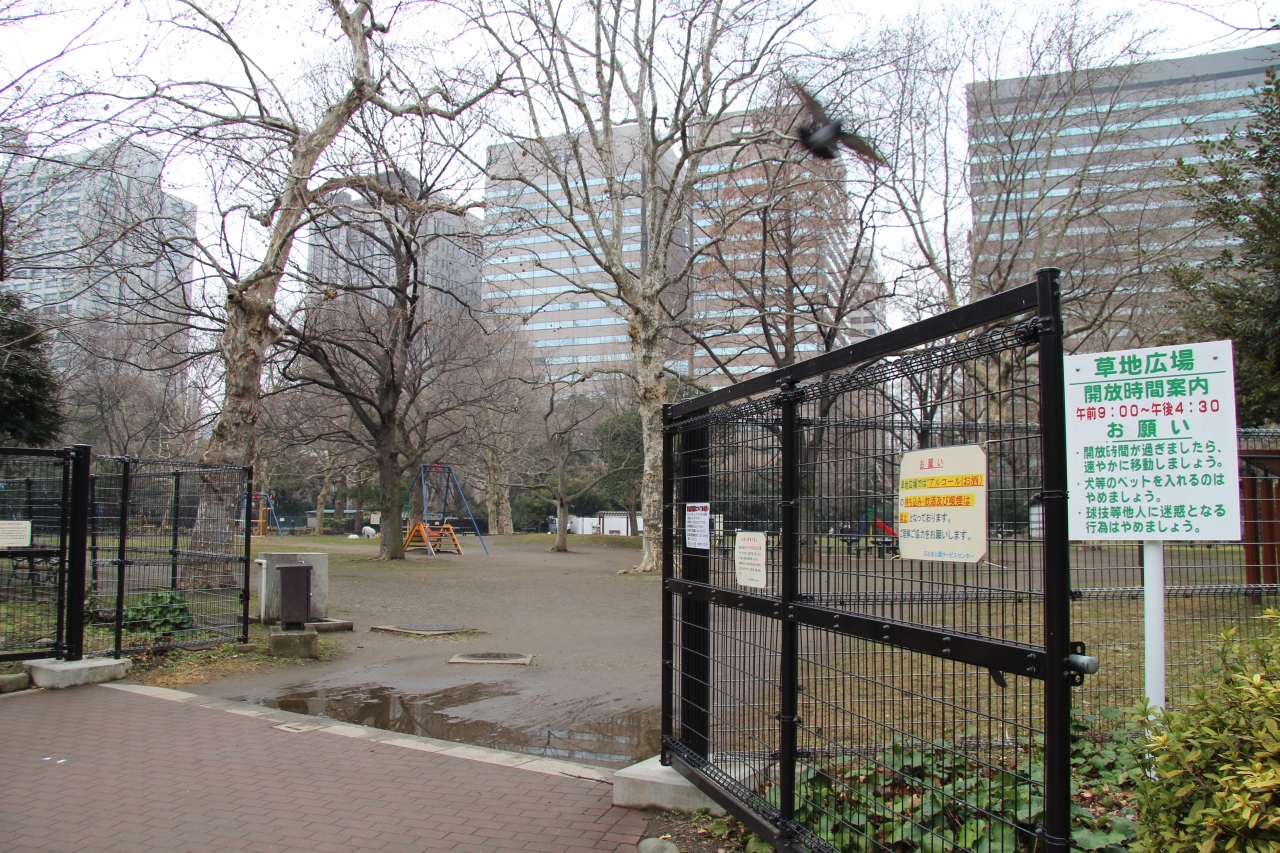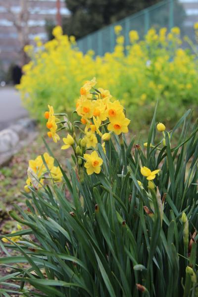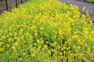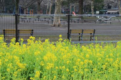 日比谷公園内にフェンスで囲まれた一角があります。中には遊具がいくつかありPark in Parkと言った感じです。こちらは利用時間が決められています。この広場のフェンス脇には菜の花が綺麗に咲いていました。