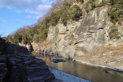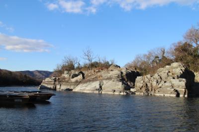 宝登山山頂のロウバイを見た後、長瀞に立ち寄りました。長瀞は隆起した岩が荒川に侵食されて出来た景勝地で、岩畳や長瀞渓谷など見どころがあります。しかしながら、長瀞をメインに観光するなら季節を選ばないとダメだと思います。真冬は風が冷たく観光どころではありませんでした。紅葉の頃が良さそうです。