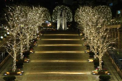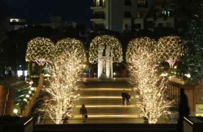 恵比寿ガーデンプレイスでまだイルミネーションをやっていました。クリスマスの時のようにバカラのシャンデリアはありませんが、充分綺麗でした。シャトー広場の上から見たプロムナードの坂道のイルミネーションと時計広場のイルミネーションがいいと思います。