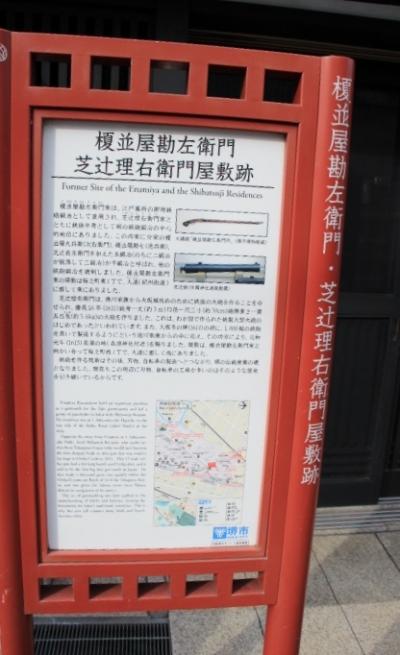 水野鍛錬所の前に榎並屋勘左衛門 芝辻理右衛門屋敷跡の立派な説明板があります。