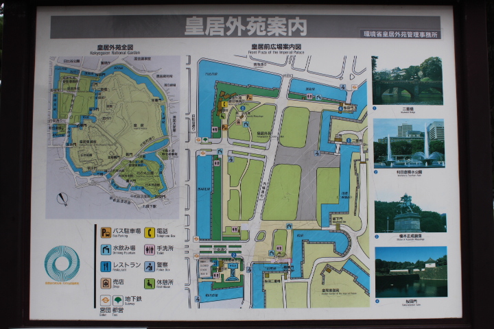 前回は春の乾通り特別公開の日に行ったので人混みがひどかったのですが、今回は祝日の早朝に行ったので警護の警察官しかいませんでした。前回は気付かなかったのですが、少し離れたところからの方が二重橋は良く見えます。