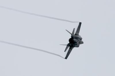 機動飛行は航空祭のメイン会場の正面で展開するので飛行区域は基地の北側になる。ところが北側は米軍の施設があって近寄りもできない。滑走路の北側を見渡せるのはこの科学館の庭しかないのである。さらに科学館の展望台に登ればさらに飛行機に近づくこともできる。東向きに離陸して左ターンで基地の北側に向かう戦闘機をずっと間近で見物できるのは素晴らしい。