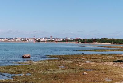 宮城海岸はコンクリートの防潮堤の上に遊歩道を作っている人工的な海岸、西向きなので夕日を楽しめる。意外に距離があって北の端は砂辺公園まで。米軍の基地スレスレまで遊歩道がある。歩いている人は9割以上アメリカ人、半数が犬の散歩。ジョギングをしている女性などはタンクトップの軽装でいかにもアメリカンな雰囲気。ローラースケートやスケボーは禁止の看板があった。夕暮れになると海岸沿いの飲み屋に若いアメリカ人が集まってワイワイ。壁がないオープンなバーもあって私が前を歩いているとアメリカ兵にジロジロ見られた。