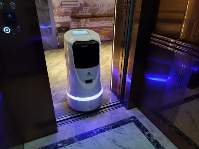 ホテルのエレベーターで遭遇したロボット。行き先もエレベーターと連動して...