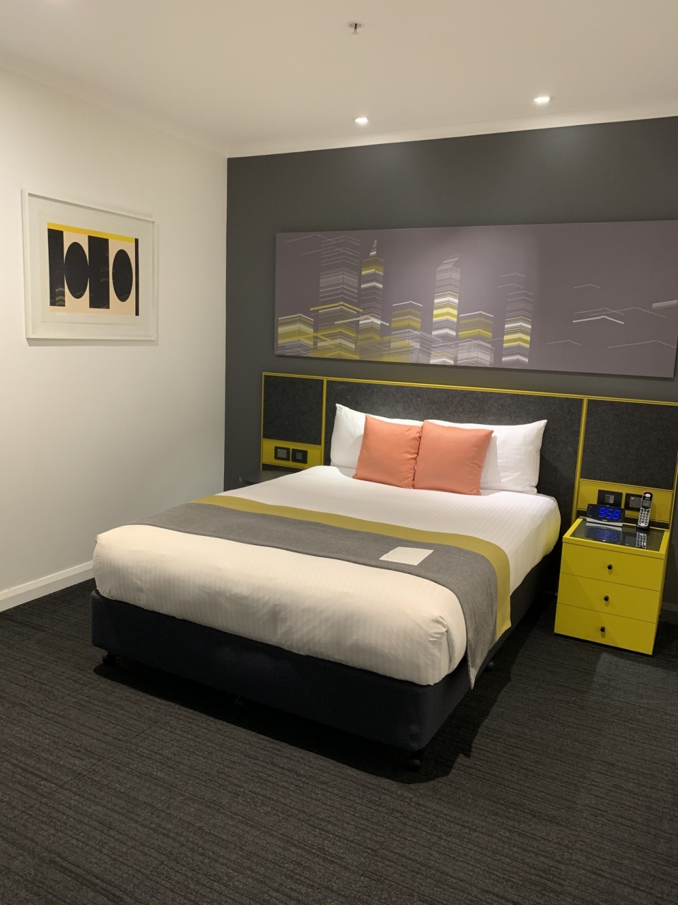 エンポリオの隣でロケーションよく、トラムに乗らずともビクトリアマーケットやフリンダース駅に歩ける距離。ロビーはこじんまりしてるけど、部屋はサービスアパートタイプで広い。寝室とリビング両方にテレビ有り。古さはちょっと感じるけどあまり気にならなかった。